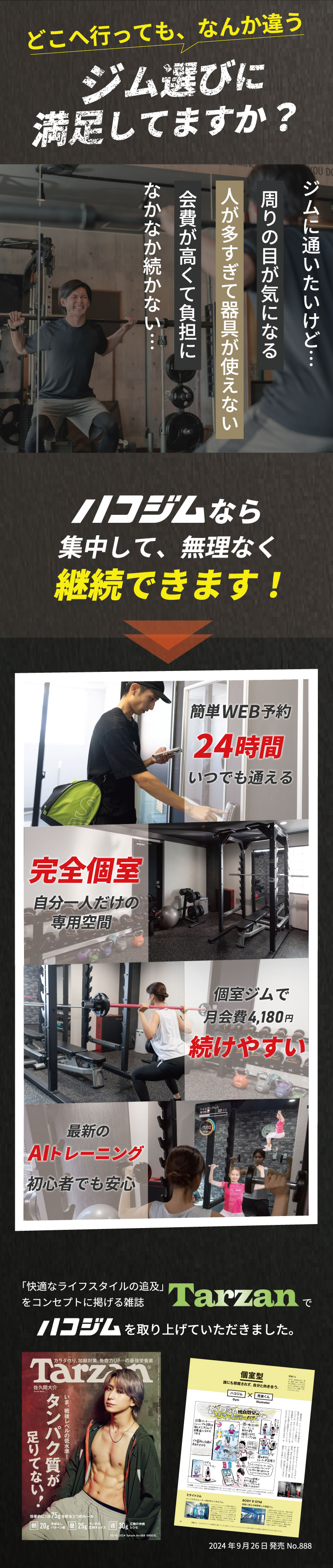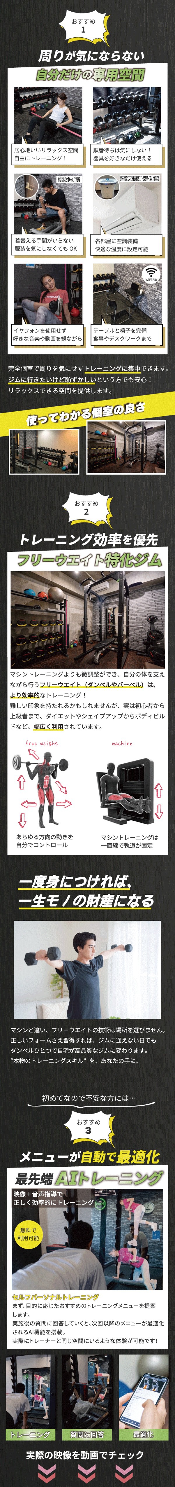 プライベート空間で人目を気にせず集中してトレーニングできるため、コストパフォーマンスは高いと自負しております。