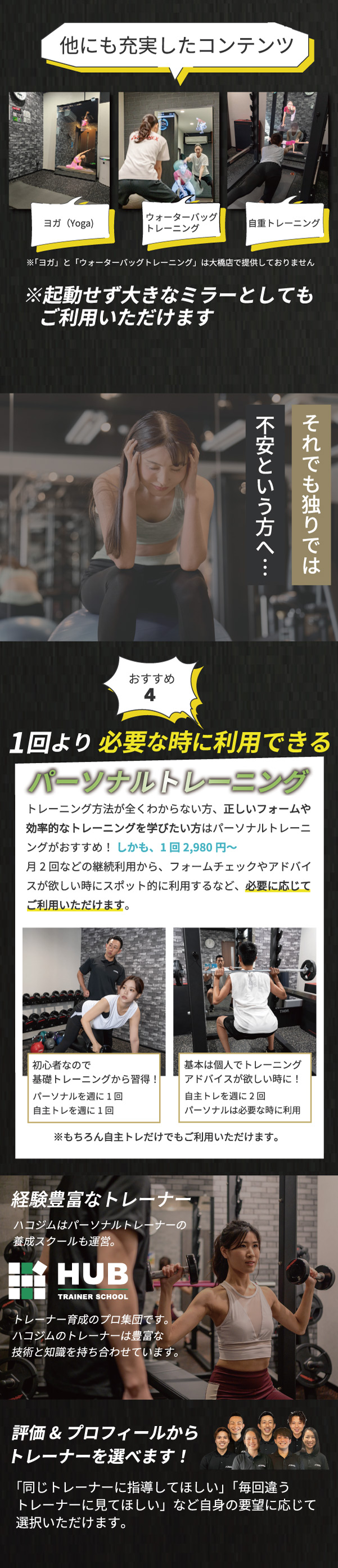 詳しくお知りになりたい方は、ぜひパーソナルトレーニングのご利用をご検討くださいませ(1回から受講可能です)。