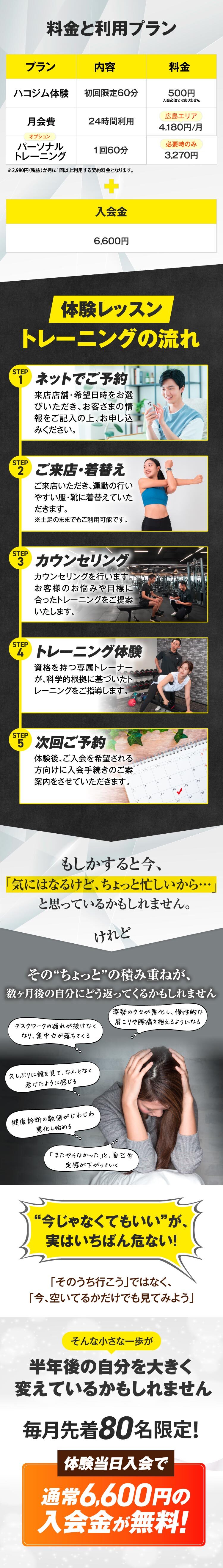 A: 当ジムは24時間営業の個室ジムでありながら、リーズナブルな価格設定となっております。