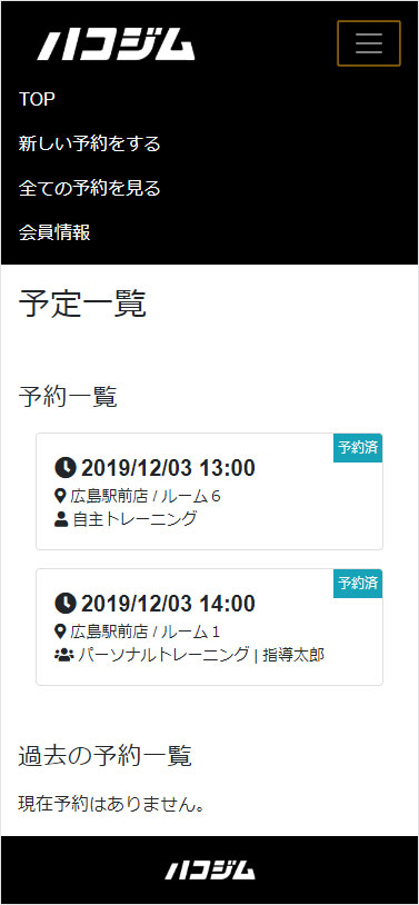 新しい予約システムは、直感的に分かりやすい操作を目指して開発しており、またご希望の店舗・トレーナーの予定も確認しやすくなりました。