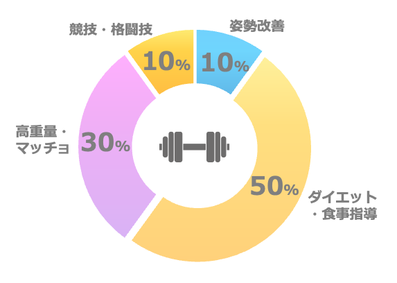 初心者の方には基礎から丁寧に、より高いレベルを目指す方には目的に応じた最適なプログラムを提供し、結果にこだわったサポートを心がけています。「無理なく続けられること」と「確実に変化を感じられること」の両立を大切にし、お客様一人ひとりに寄り添いながら、理想の身体づくりを全力でサポートいたします。